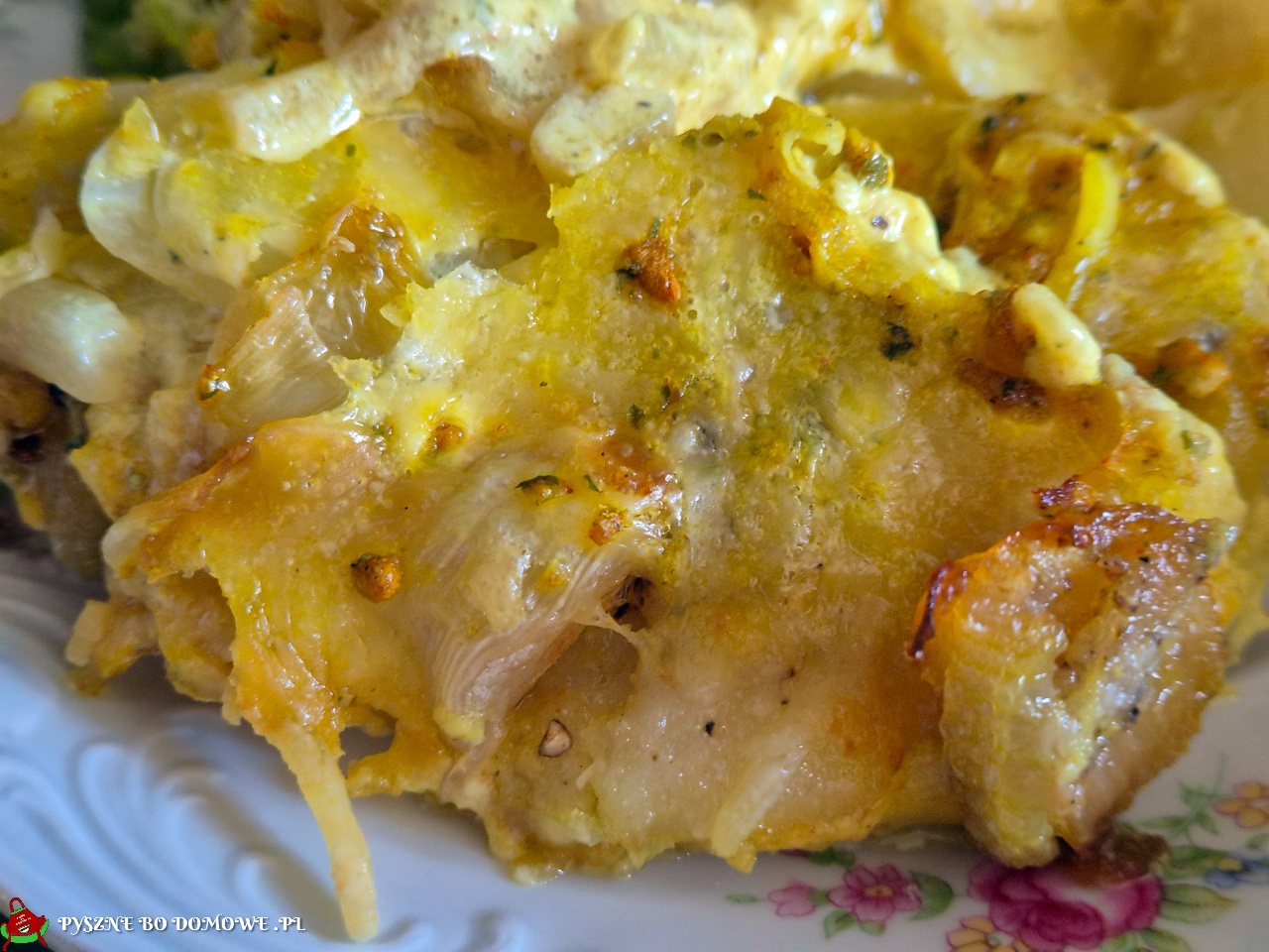 Składniki sosu mieszamy ze sobą i nim polewamy rybę z cebulą. Całość posypujemy tartym żółtym serem. Wkładamy do piekarnika nagrzanego do 180 stopni C na 30 min. Smacznego!