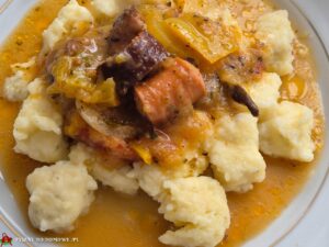 - 1/2 kg dowolnej kiełbasy ( u mnie krucha z gęsiną)