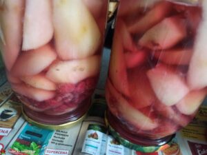 Malinowe gruszki w słodkiej zalewie