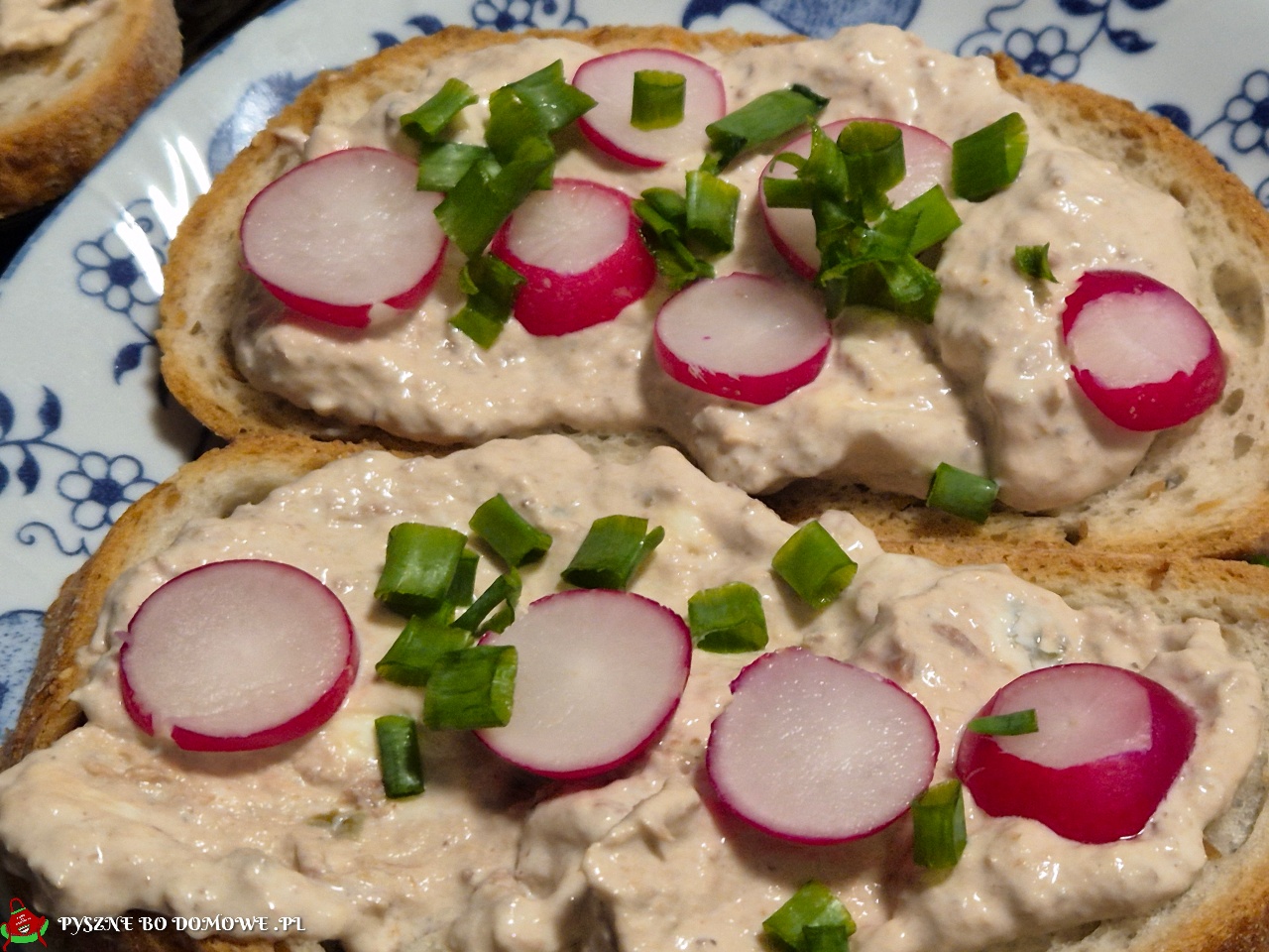 Do blendera wkładamy odsączoną zawartość  puszki z tuńczykiem, odsączone kapary, serek, majonez i blendujemy na pastę. pastę przekładamy do salaterki. Ja nią posmarowałam pajdy chleba. można je kłaść na tortillę czy krakersy. Kanapki ozdobiłam drobno pokrojonym szczypiorem i plasterkami czerwonych rzodkiewek. Smacznego!