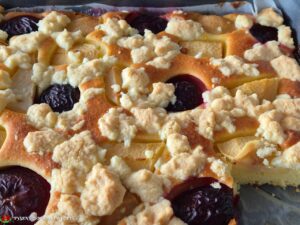 Placek bardzo łatwy do zrobienia w każdych pomieszczeniach nawet działkowo- biwakowych. Trzeba mieć tylko piekarnik. Można go zrobić z dowolnymi owocami sezonowymi. U mnie było to parę śliwek i 2 gruszki. nie potrzebujesz mieć do jego wykonania robota ani wagi. Polecam!